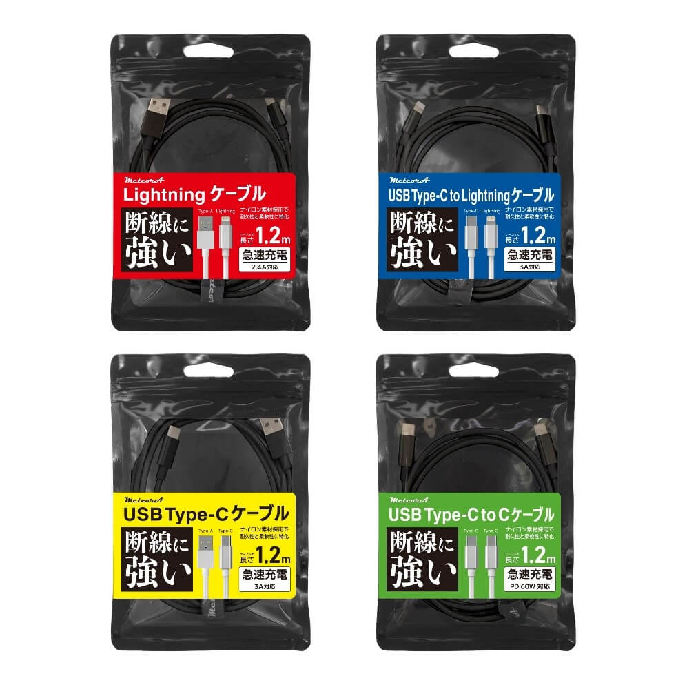 【新製品情報】2026.2.13| MeteroAシリーズ 高耐久強靭ケーブル4種類「CBTC001BK」「CBLG001BK」「CBLC001BK」「CBCC001BK」を発売致します。