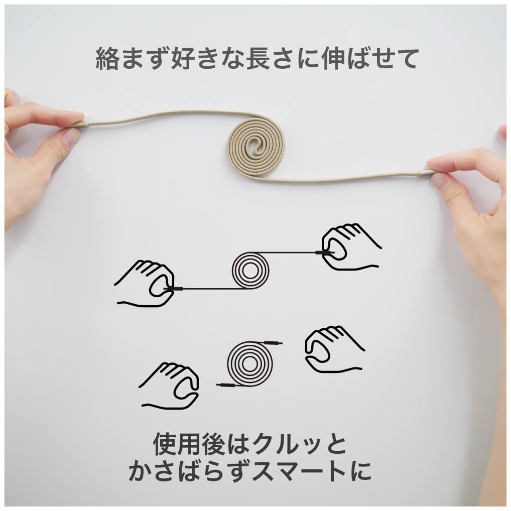 絡まずに好きな長さに伸ばせて、使用後はピタッとまとまりスマートに