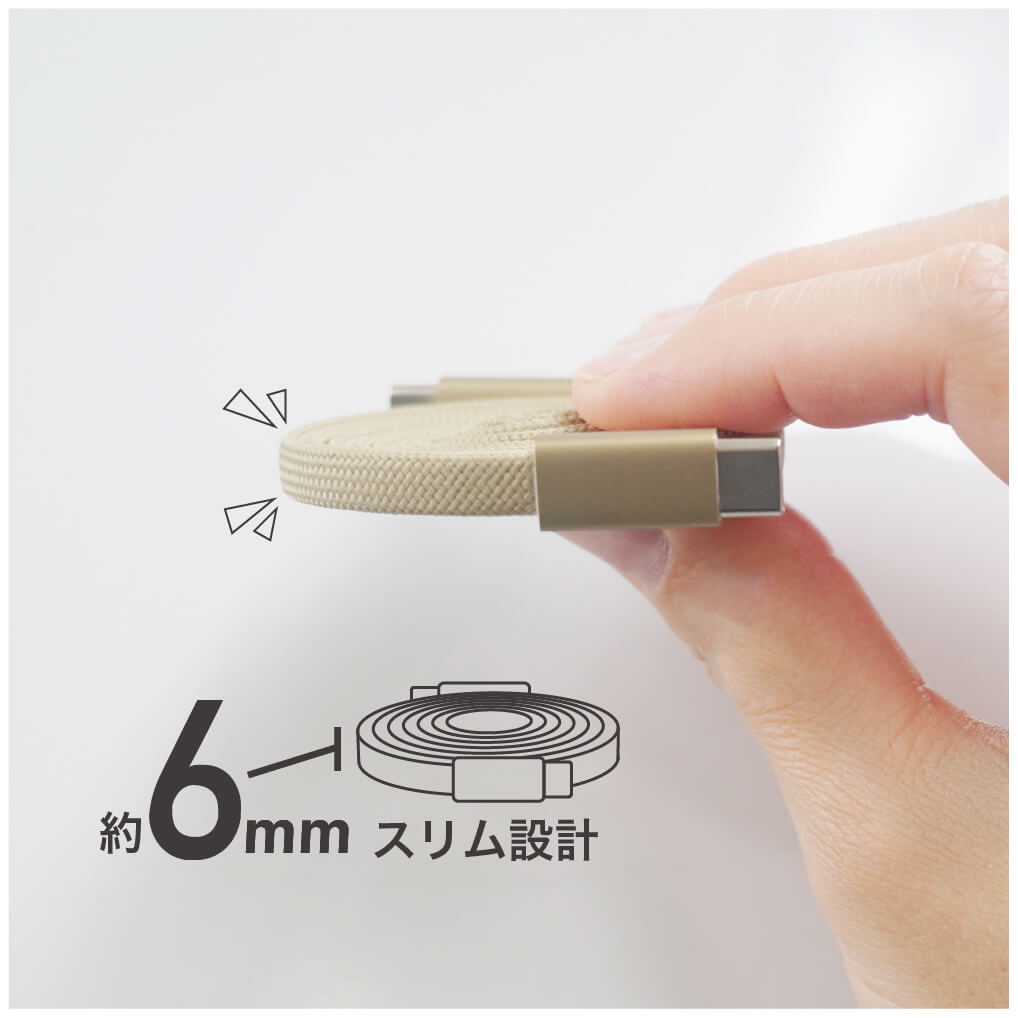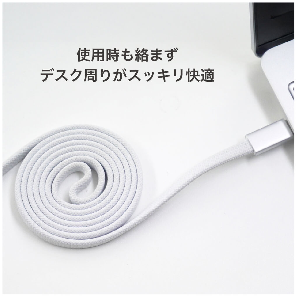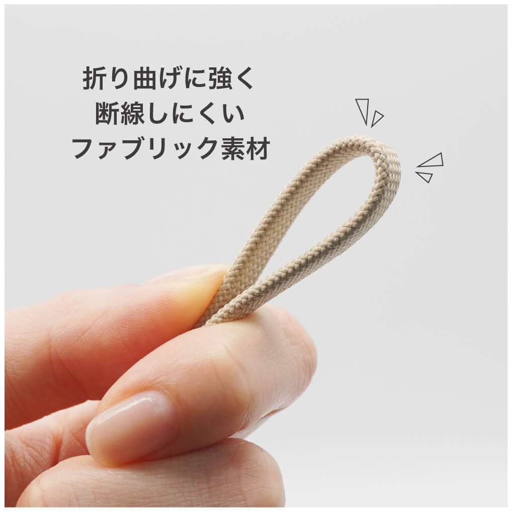 折り曲げに強いファブリック素材で、断線しにくいケーブル
